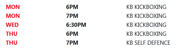 - 1 Weekly KB Kickboxing or KB Self Defence class.